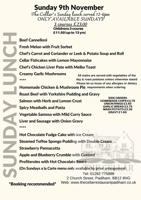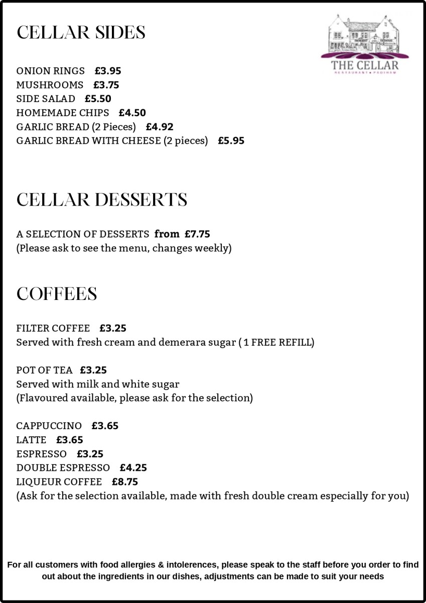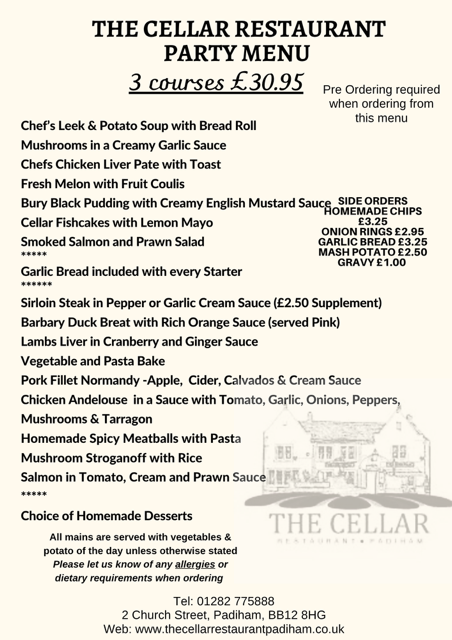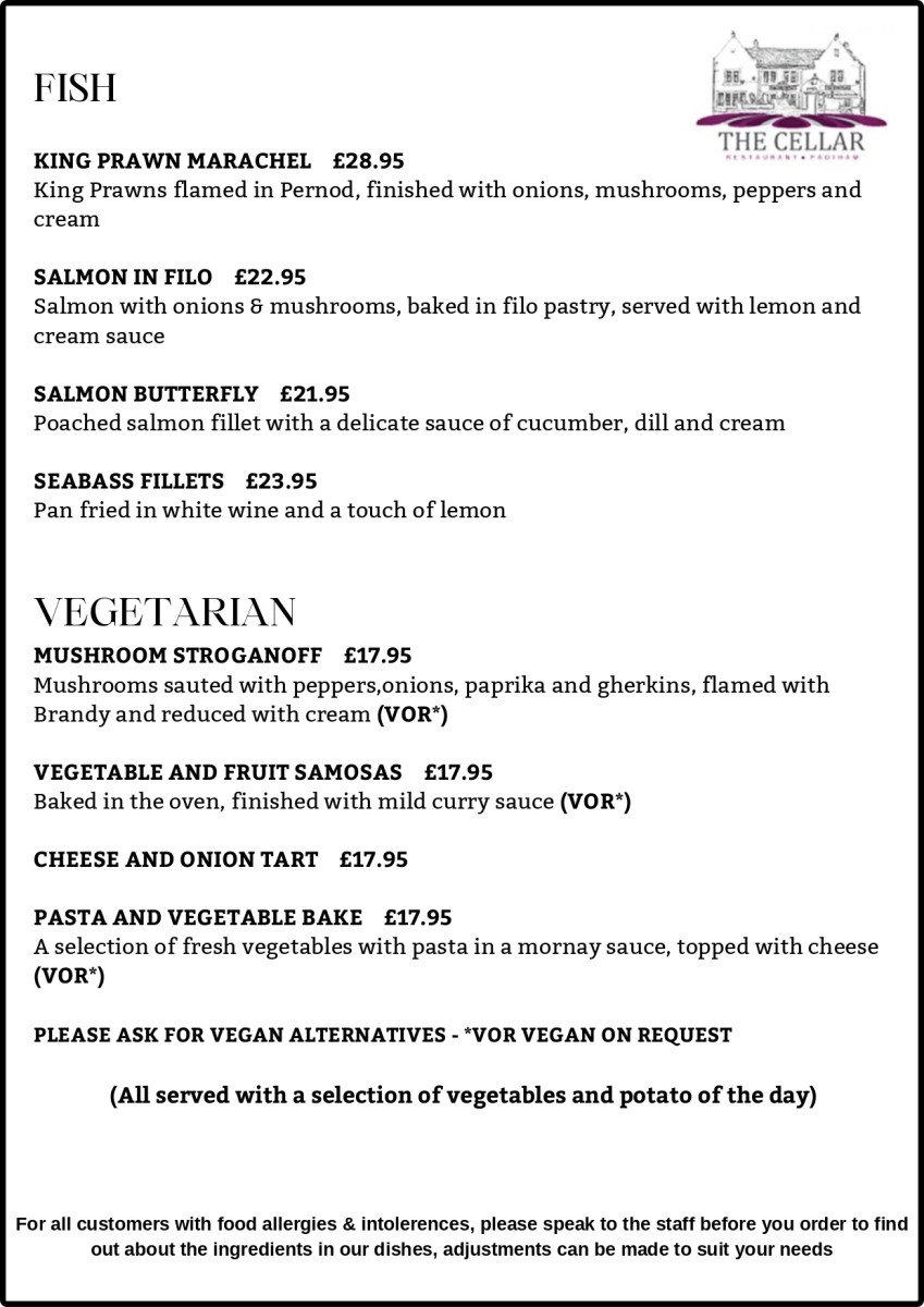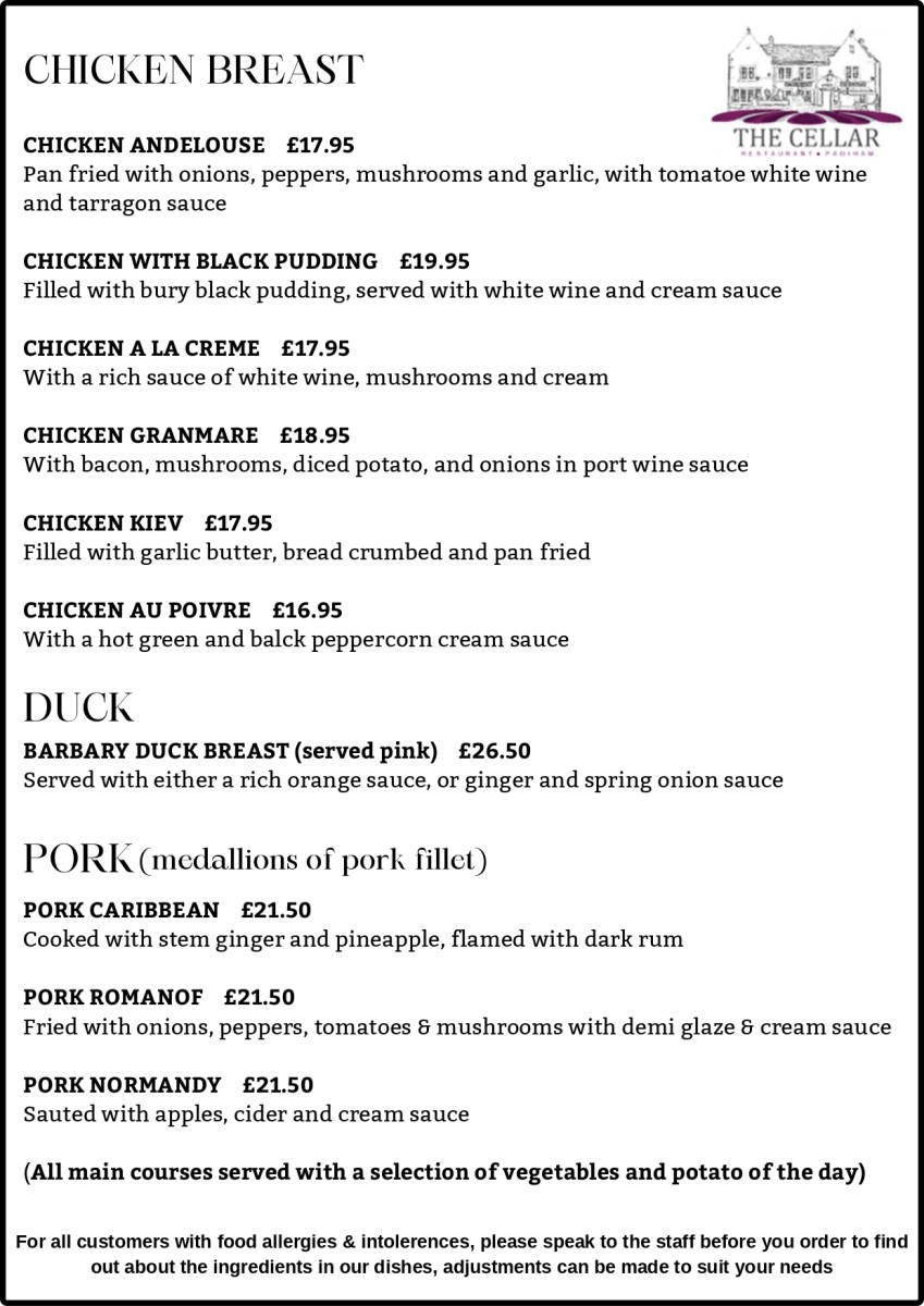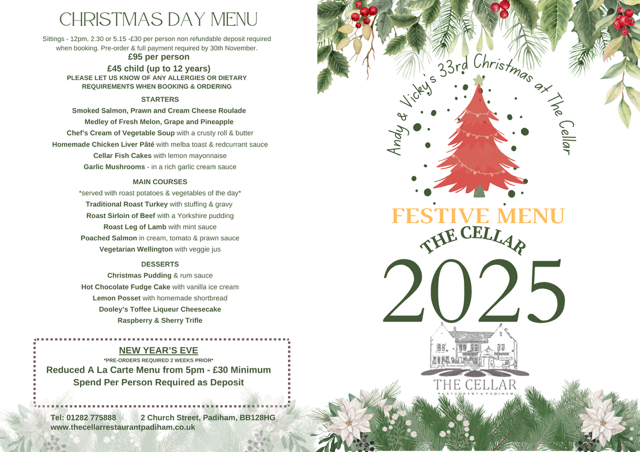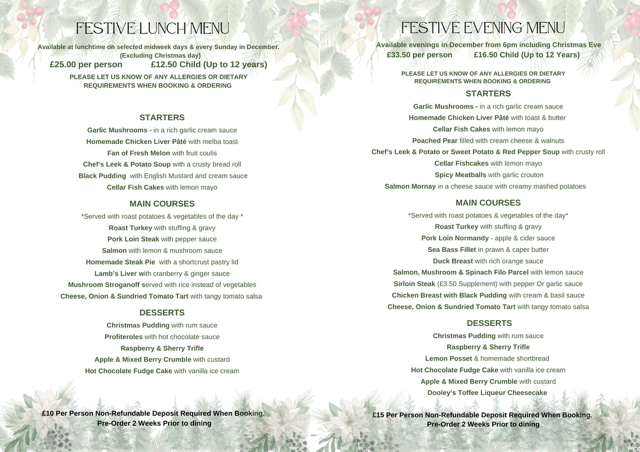 * Please note the party menu and and Sunday lunch menu are slightly different in December, please click on the festive menus for more details