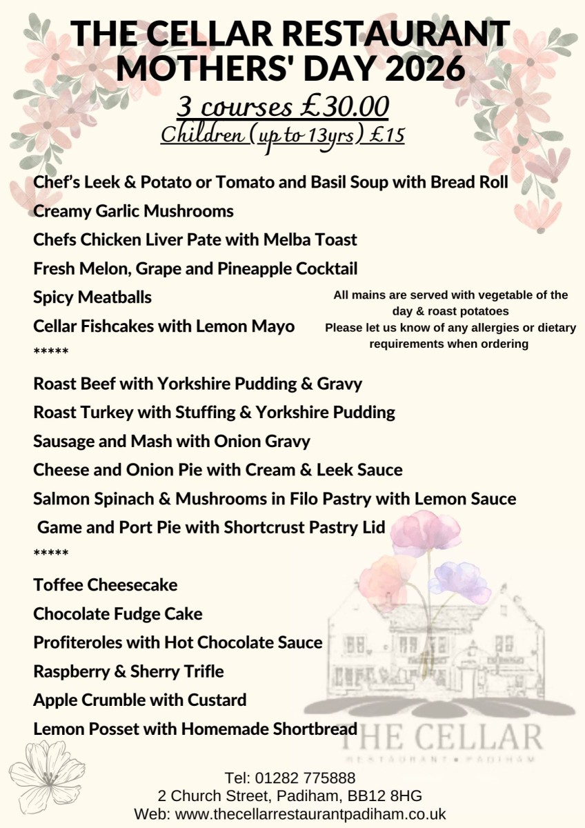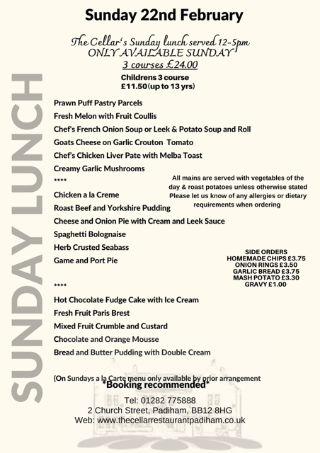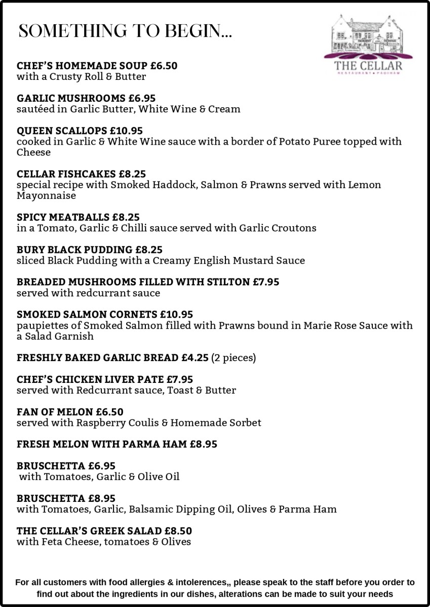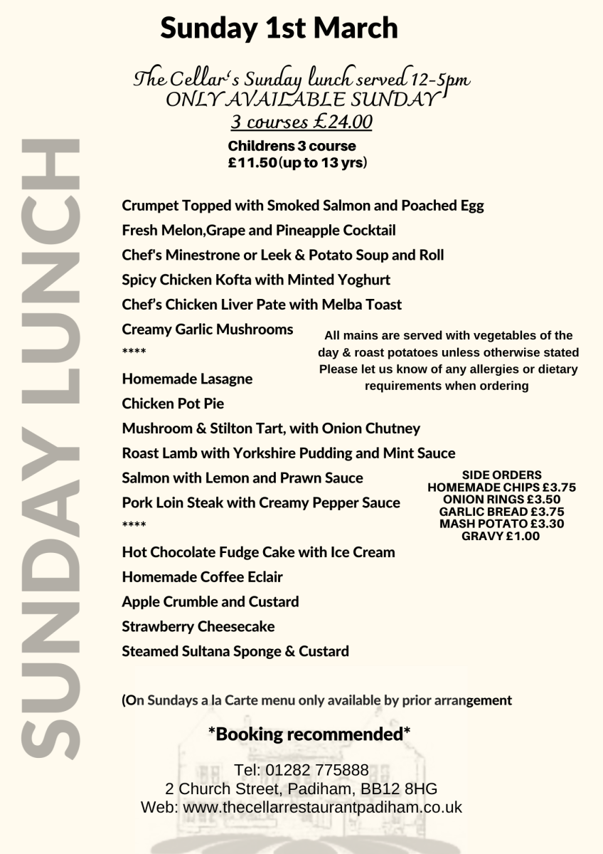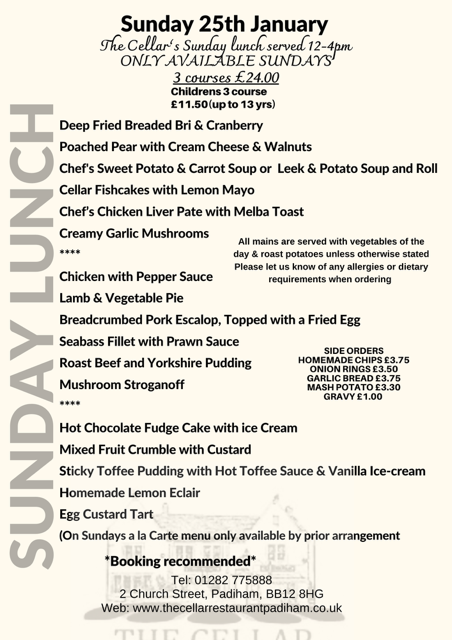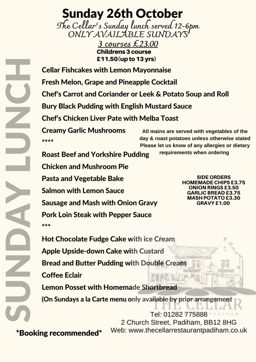 * Please note the party menu and and Sunday lunch menu are slightly different in December, please click on the festive menus for more details