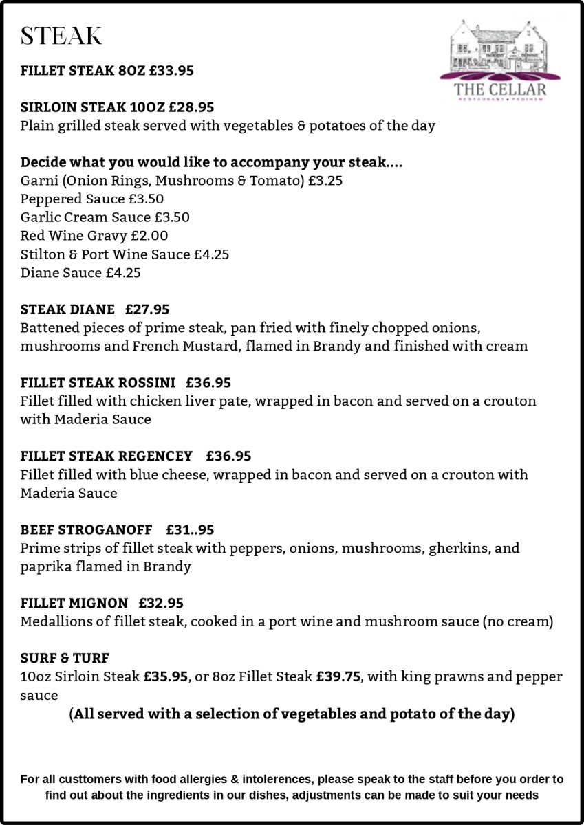 We have a variety of menus available to choose from, so no matter what your taste or budget, we will have something for you. Whether you like to try new things or like to stick with your favourites, we will spoil you with choice!